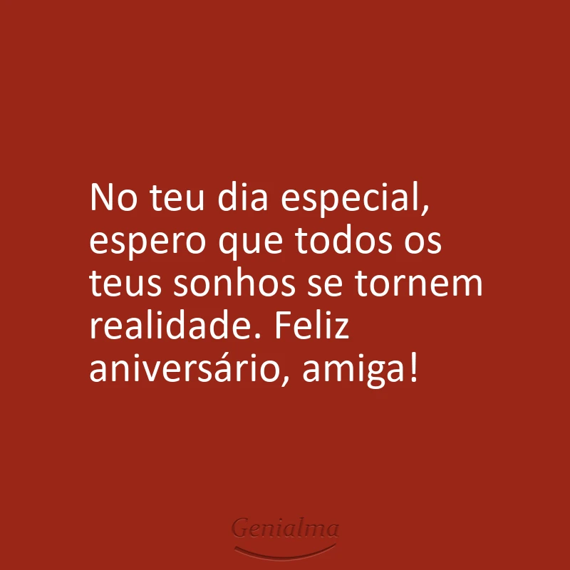 No teu dia especial, espero que todos os teus sonhos se tornem realidade. Feliz aniversário, amiga!
